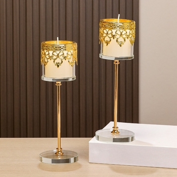 Portavelas de aleación de cristal elegante simple personalizado OEM para decoración de hotel en casa para mesa de restaurante-Venta al por mayor directa de fábrica